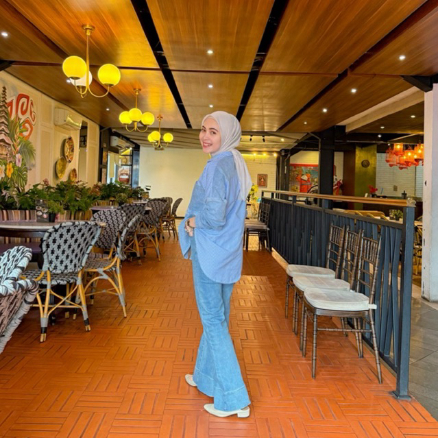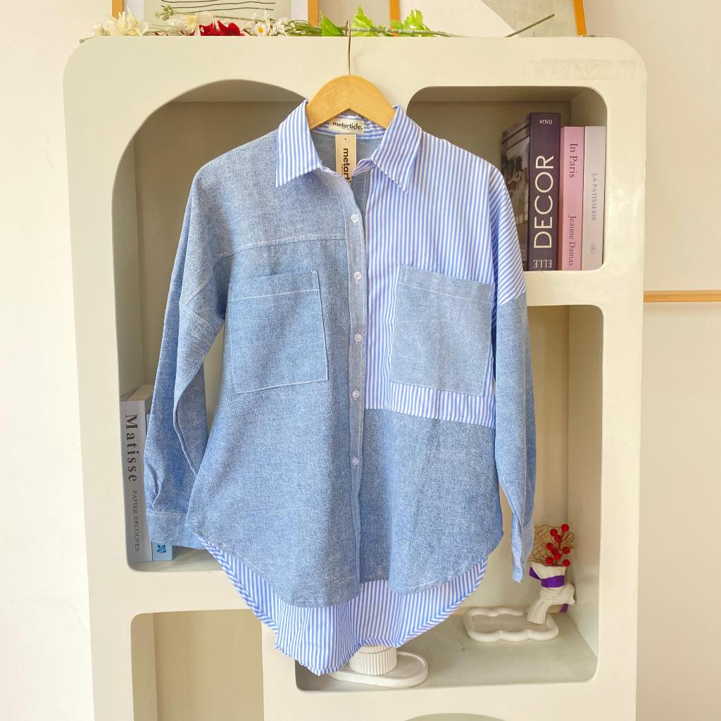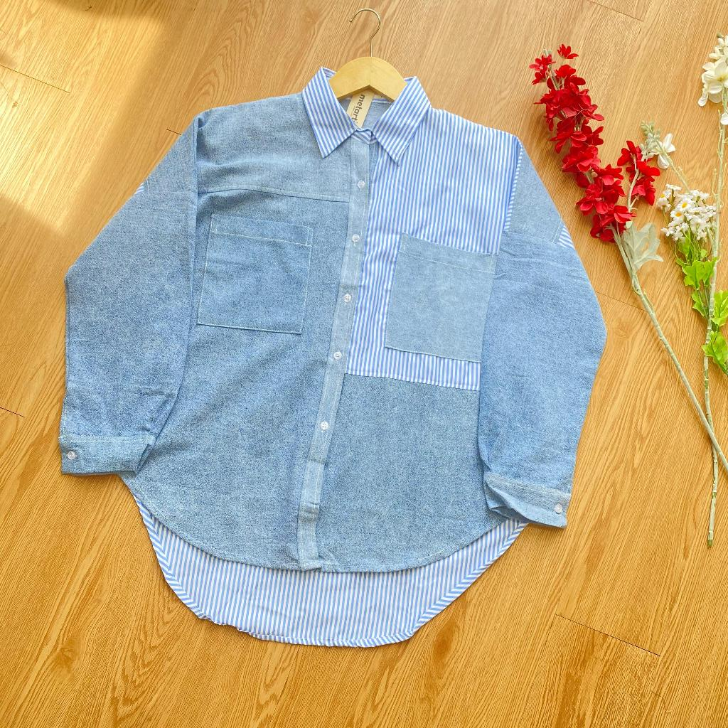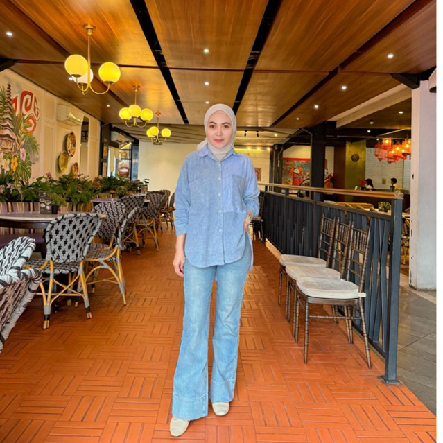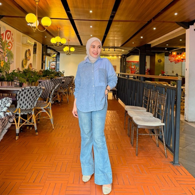 Jeanny Shirt Kemeja Wanita Kekinian Jeans Stripe
