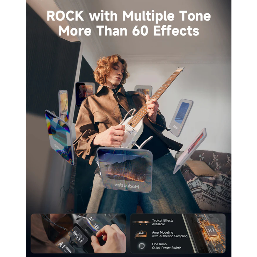 Donner Hush X PRO Multi-Effects Silent Gitar Elektrik - White
