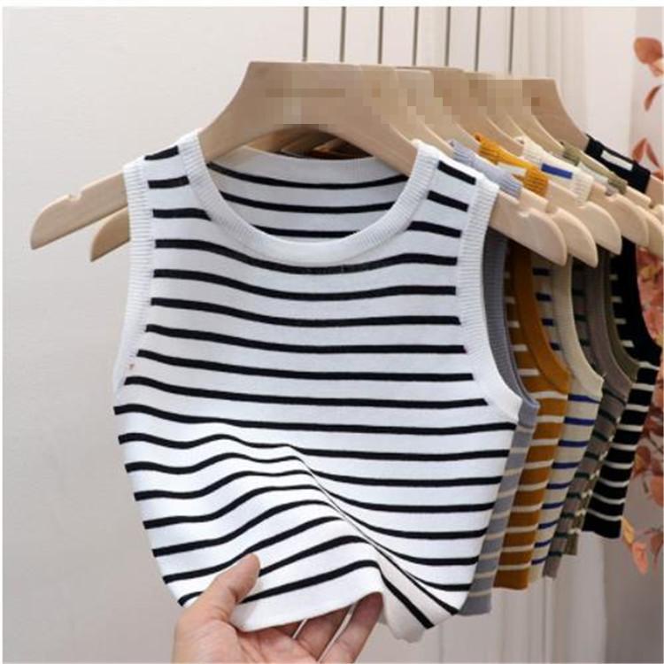 Atasan Rajut Salur Non Lengan Leher Bulat Fashion Wanita 019