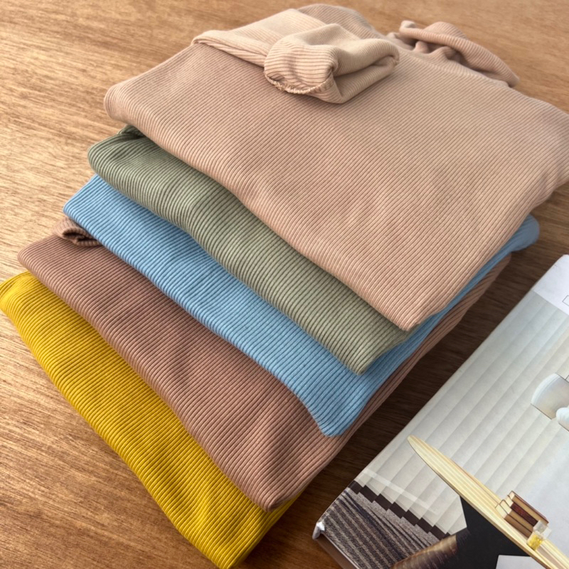 Kaos Turtleneck Leher Tinggi Wanita Lengan Panjang Bahan Rib Premium Tebal Lembut Dan Adem