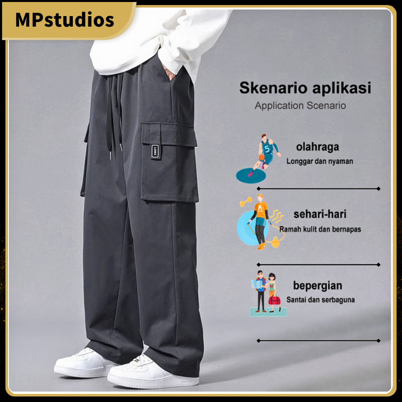 Celana Cargo Pria Oversize Bahan keren Wide Leg Pants Korean Style Celana Cargo Outdoor-G88