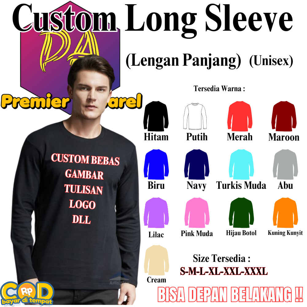 CUSTOM KAOS LENGAN PANJANG 13 WARNA PRIA WANITA SABLON KAOS 30S
