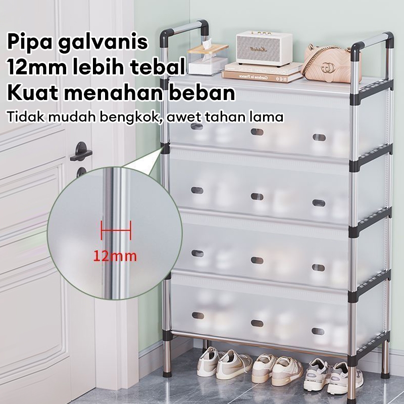 Rak Sepatu Tertutup Tahan Debu 3-7 Susun Rak Sepatu Stainless Kuat Tebal Kokoh Rak Sepatu Minimalis