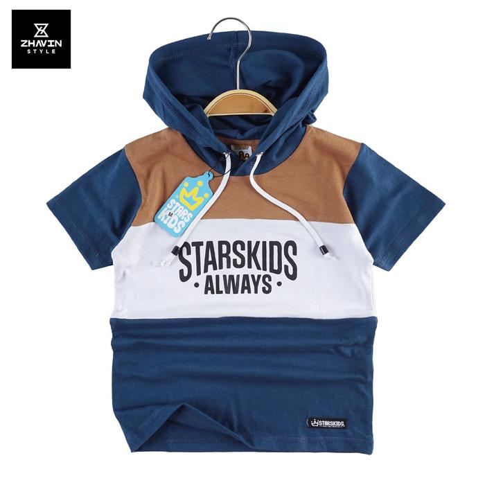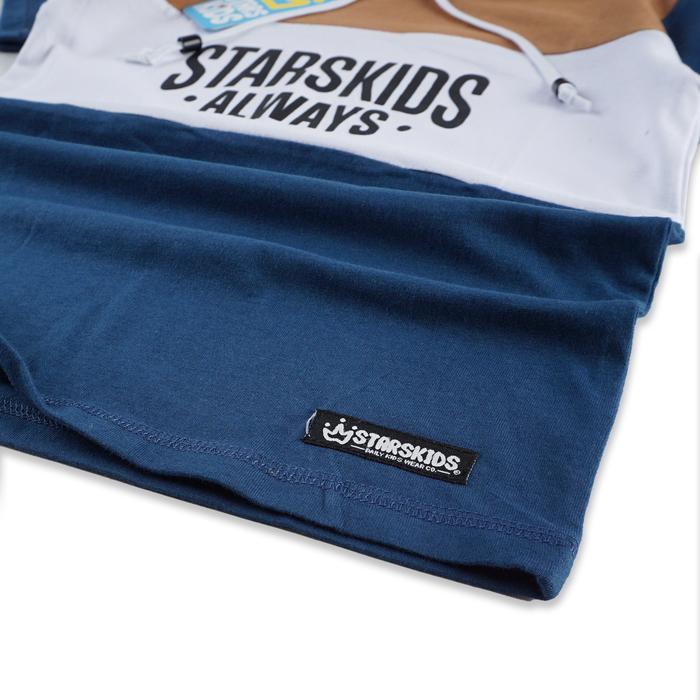KAOS HOODIE KOMBINASI ANAK LAKI LAKI USIA 112 TAHUN BAHAN KATUN COMBET 30S KOMB ALMOND TEAL BLUE S