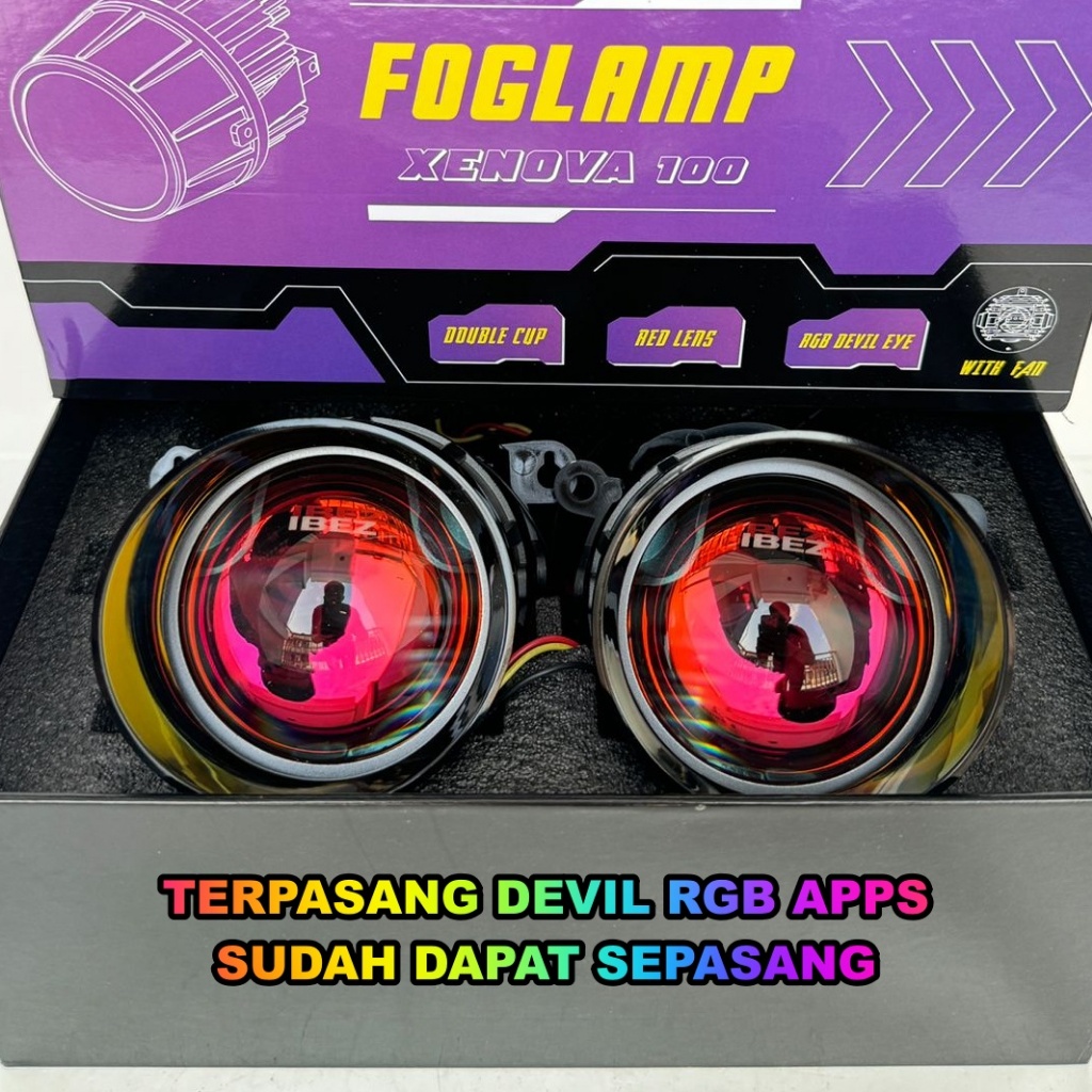 Foglamp Biled 3 inch Premium IBEZ RedLens Devil Rgb App 3 Warna Cahaya Foglamp Mobil 3 inch IBEZ
