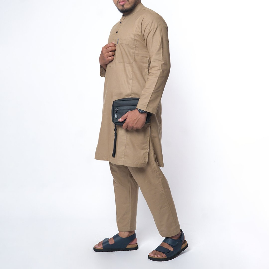 KHOIRUMMAH Kurta Khaidar Set | Koko Kurta Polos Stelan | Baju Muslim Set Pria Lengan panjang | Cream