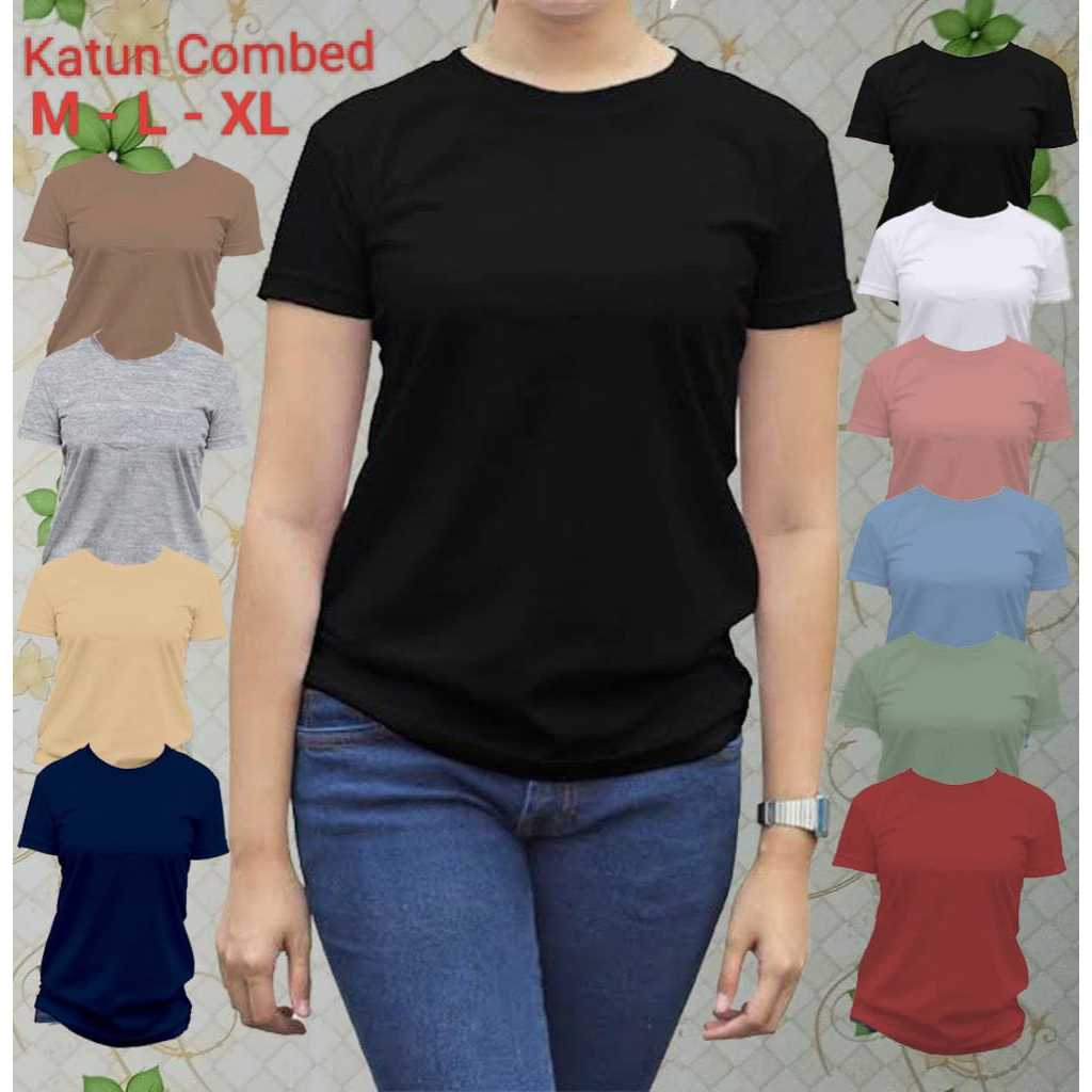 KAOS POLOS WANITA PREMIUM - KATUN COMBED ASLI - KAOS OBLONG WANITA