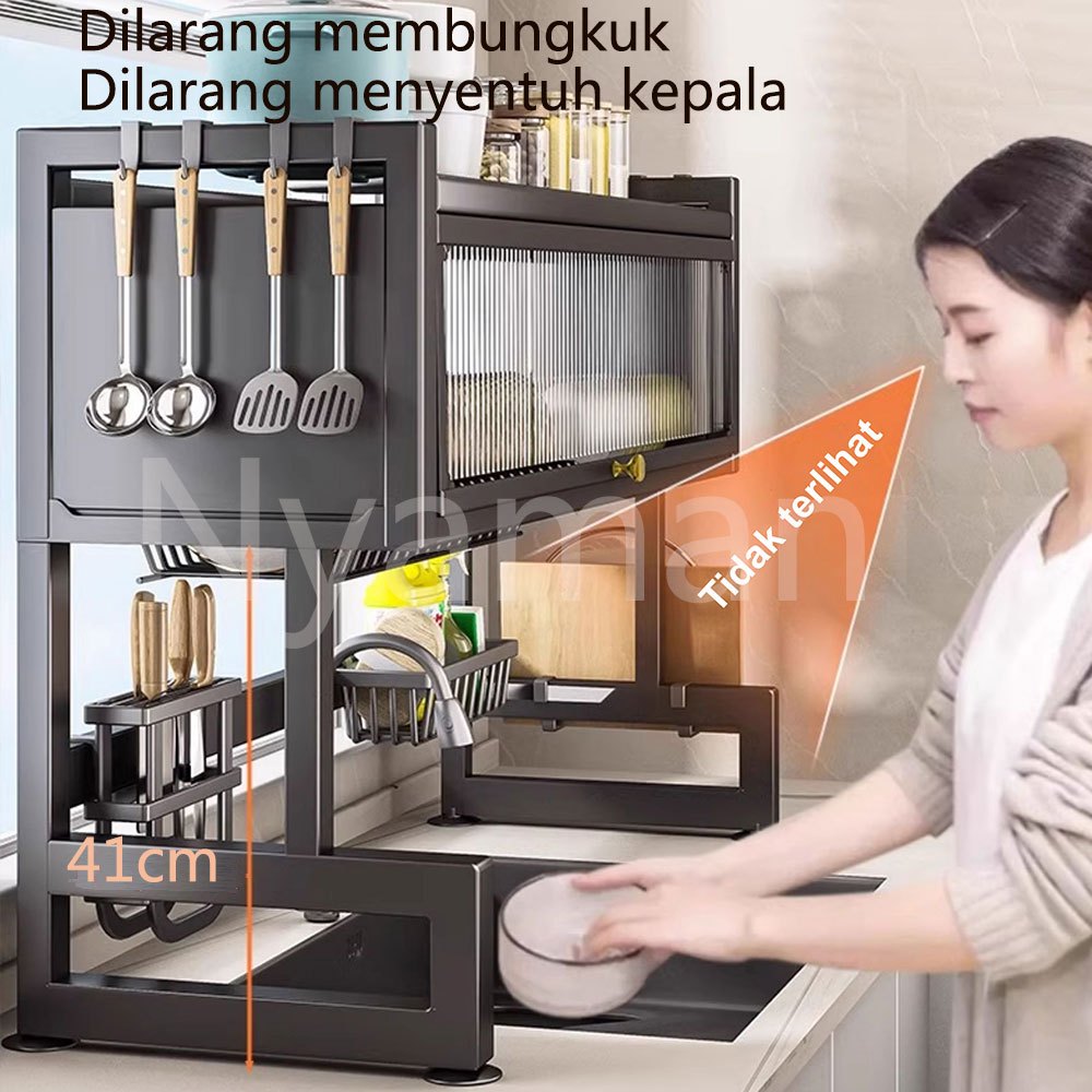 Nyaman Rak Piring Tertutup Rak Piring Wastafel With Cover Stainless Steel Rak Dapur Rak Piring Gantung Cuci Piring Wastafel