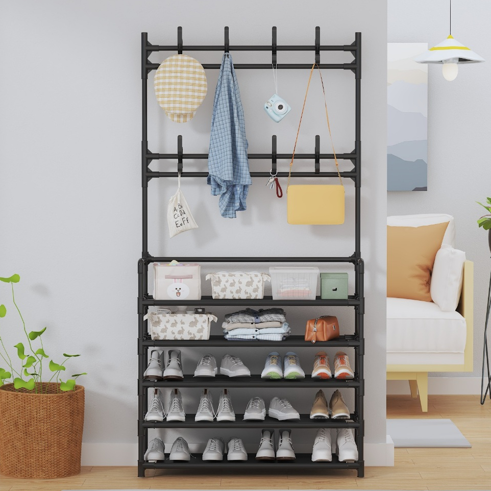 MESH Rak Sepatu Susun Dengan Gantungan / Rak Sepatu dengan Gantungan Topi Serbaguna 5 & 4 Susun