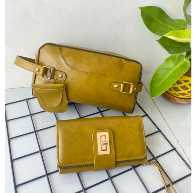 Paket Couple Pouch Bag William + Dompet Savana READY STOCK) Handbag Kulit Cewek Cowok
