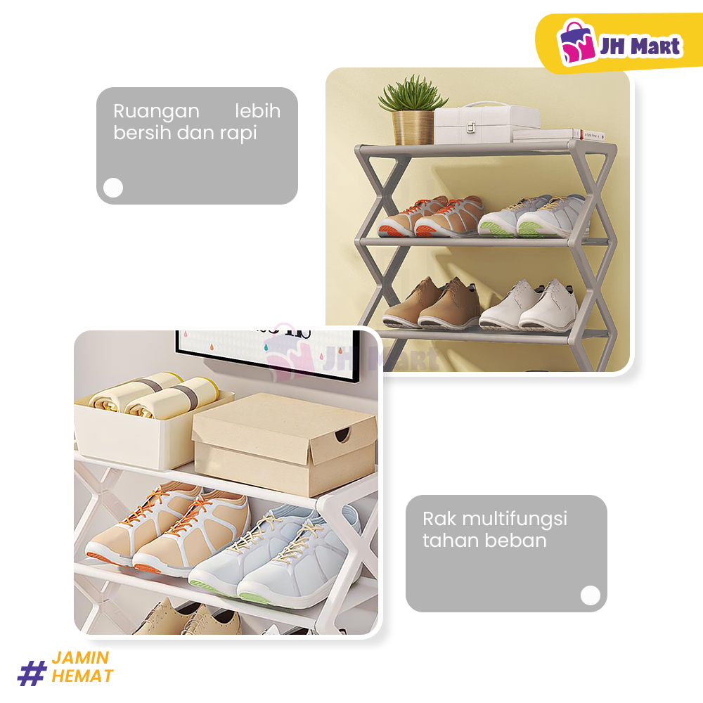 JHM - Rak Sepatu 4 Susun Serbaguna Sandal Portable Model Zig Zag Hemat Tempat