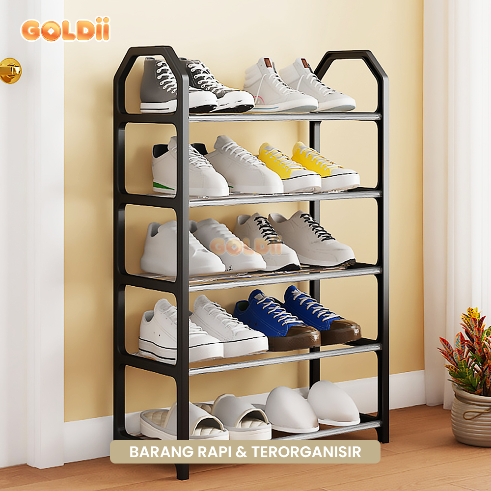 GOLDII - Rak Sepatu Stainless Steel Portable Tempat Sepatu Sandal Minimalis 4 Susun dan 5 Susun Berkualitas