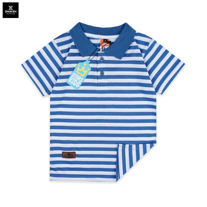 KAOS KERAH ANAK LAKILAKI MOTIF SALUR STRIPE UMUR 112 TAHUN KK SL 02 DENIM PUTIH S