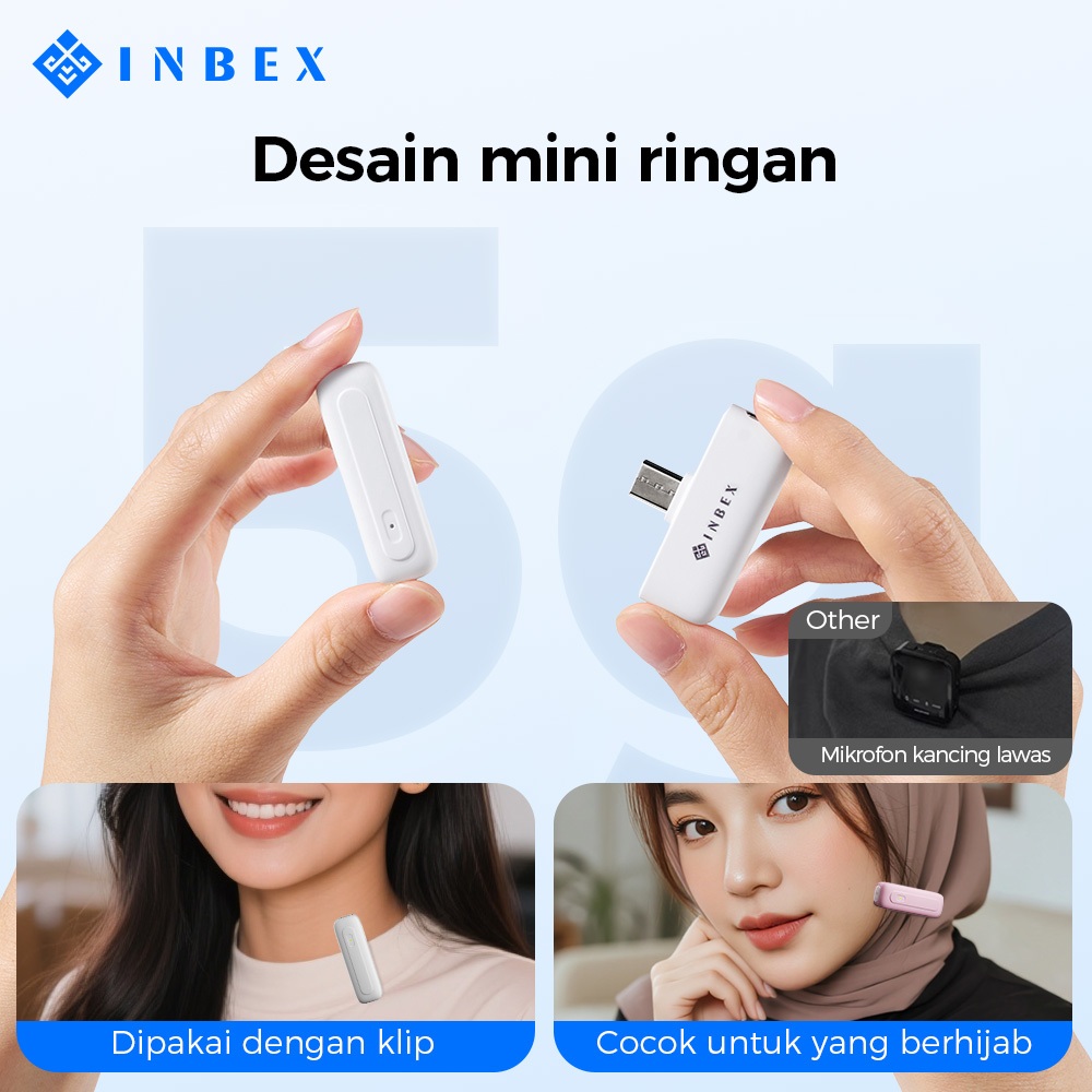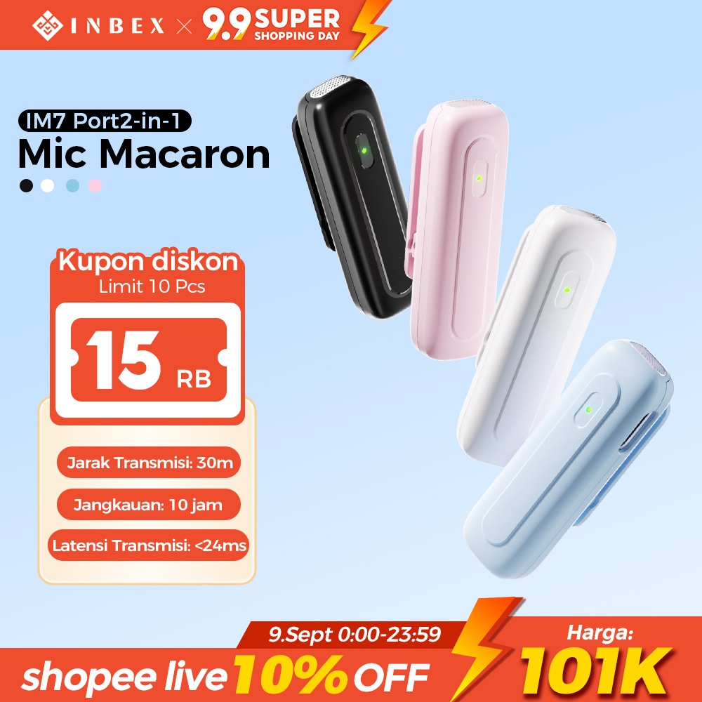 INBEX IM7 1 TO 2 Wireless Lavalier Microphone Macaron 360° Omnidirectional & DSP Chip & One-Touch Mute & 2.4G Low-Latency 9 ms & ENC 90 PERSEN