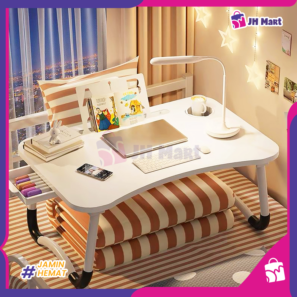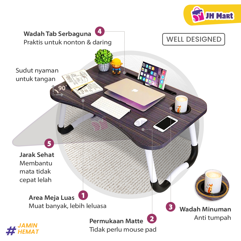 JHM - Meja Belajar Laptop Lipat Kayu Portable Serbaguna Kaki Besi Kokoh Multifungsi