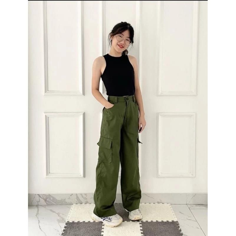 Celana Cargo Wanita Highwaist Premium Jumbo Pinggang Karet CARGO PANTS WANITA AMERICAN DRILL