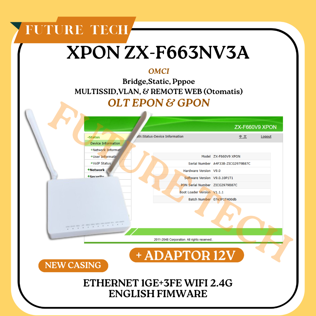 NEW XPON EPON GPON ONU ZX-F663NV3A DENGAN ADAPTOR