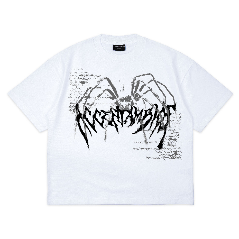 AccentAmbios Boxy Oversized T-Shirt Spider White Unisex - Cotton Combed 20s