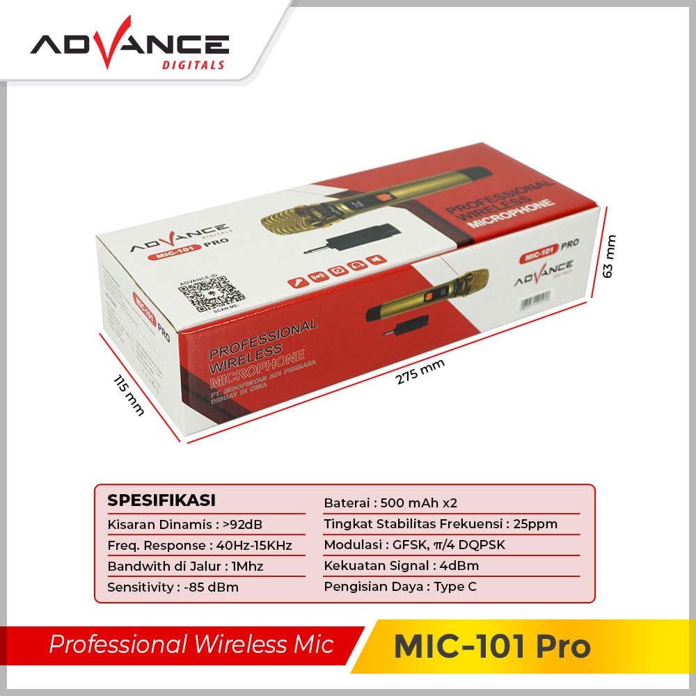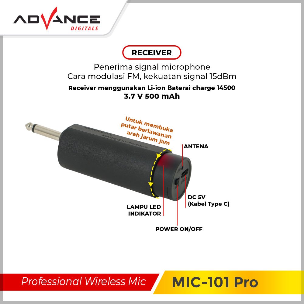 MIC-101 PRO Advance — Mic Wireless Profesional, Suara Jernih & Stabil Garansi Resmi 12 Bulan