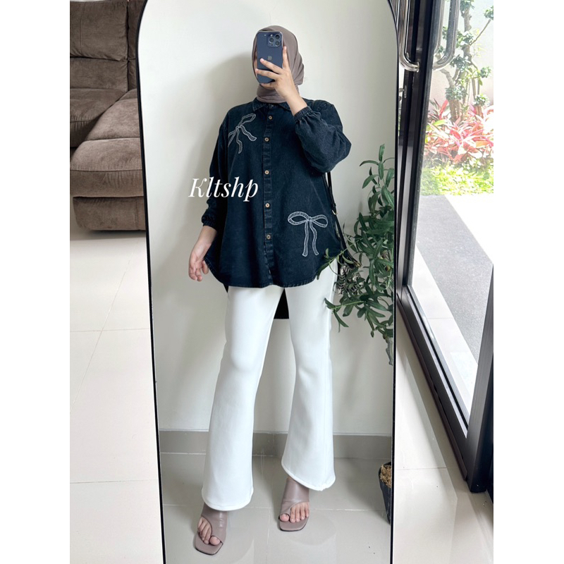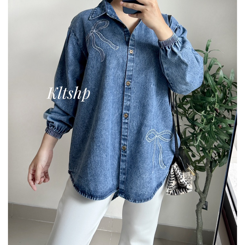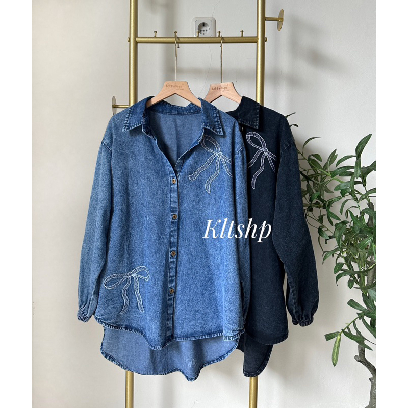 KLT - Kemeja Wanita Jeans Lengan Panjang Blouse Denim Wanita Atasan Cewek Kekinian JEHA BLOUSE RAK 4