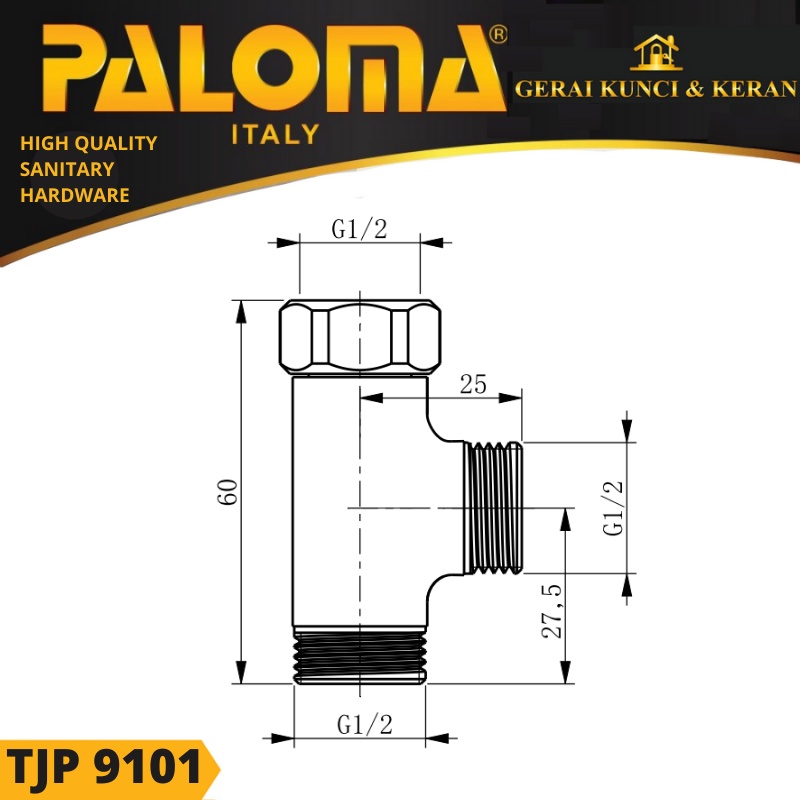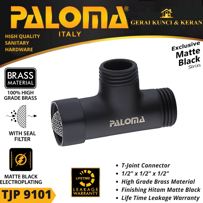 PALOMA TJP 9101 SAMBUNGAN NEPEL T CLOSET TOILET WC CONECTOR 1/2 INCH HITAM BLACK MATTE