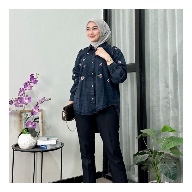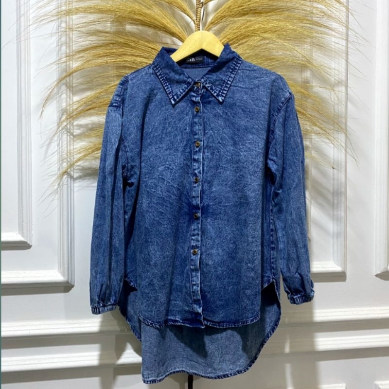 KEMEJA JEANS WANITA OVERSIZE TERBARU / ATASAN WANITA JEANS ZARA LENGAN KARET