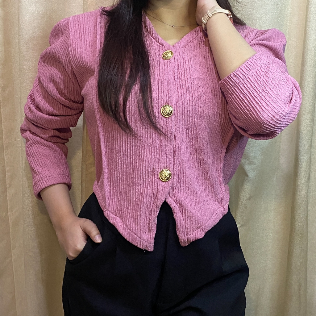 Cohan Ds011 Women's CropTop Slimbody Square Neck Long Sleeve Hitam Putih S/M/L