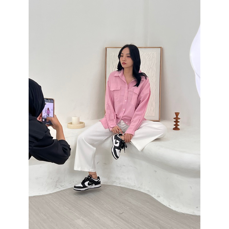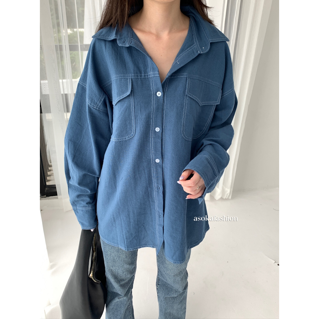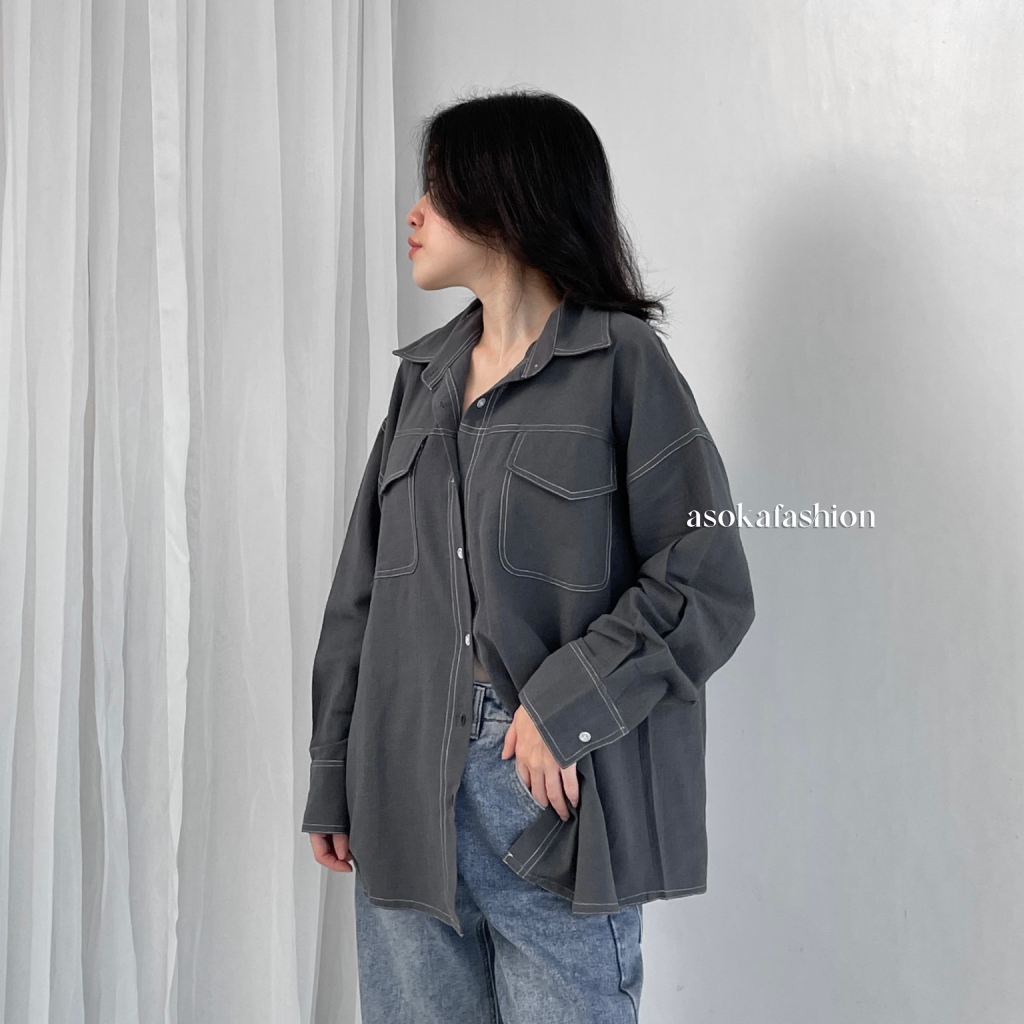 ASOKA Kaylee Shirt 2198 - Atasan Oversize Wanita Kemeja Kantor/Casual - Pocket Shirt Basic Oversize Linen