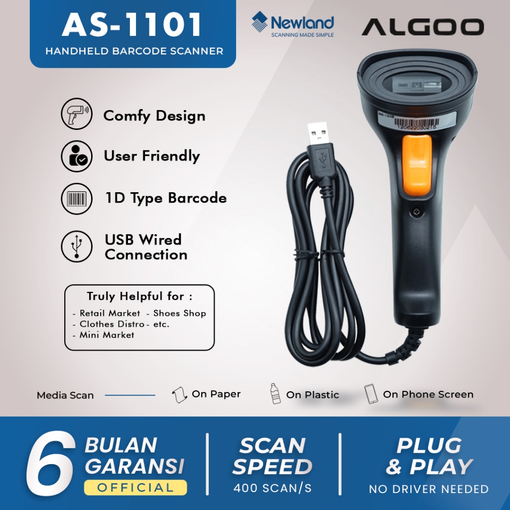 ALGOO AS-1101 Alat Scan Kasir Bare Scanner USB
