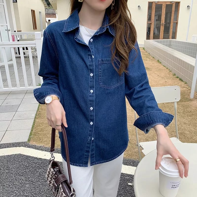 958-KEMEJA JEANS DENIM ATASAN WANITA LENGAN PANJANG KASUAL