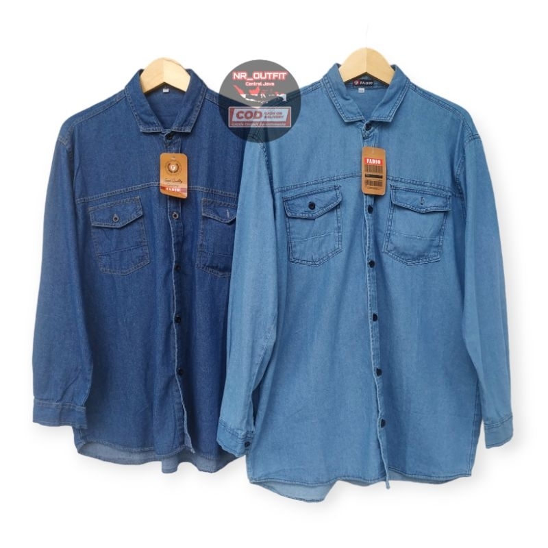 Kemeja Denim Pria Jeans Panjang Flanel Ukuran L-XXXL Cowok Jumbo