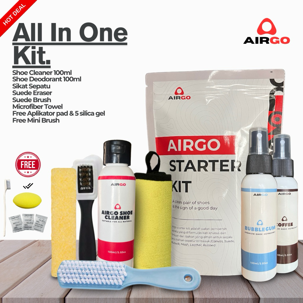 Airgo Shoe Care - All In One Kit Paket Hemat - Pembersih Sepatu Canvas Suede Leather Putih & Warna - Aman untuk Sue