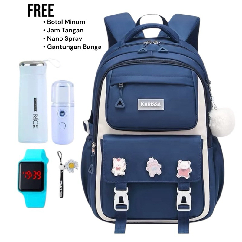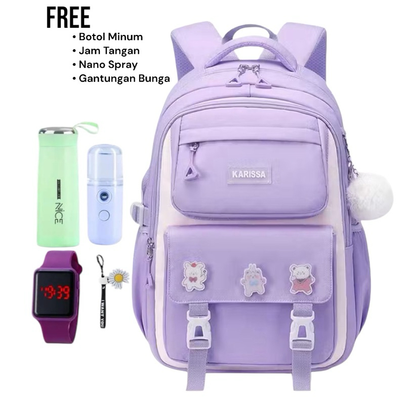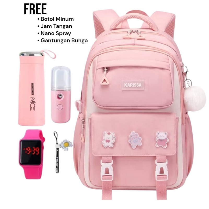 5 IN1 TAS FASHION RANSEL WANITA SEKOLAH SD SMP REMAJA BANYAK BONUS MOTIF KARISSA FASHION