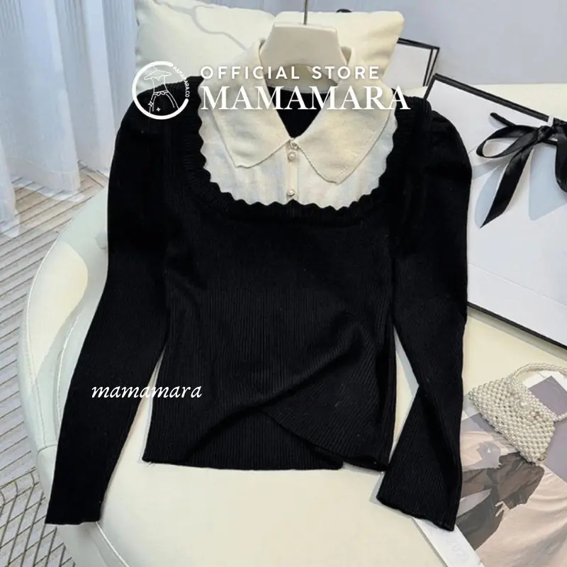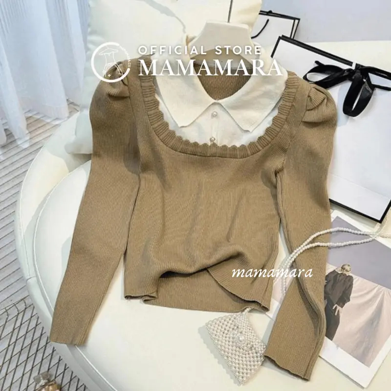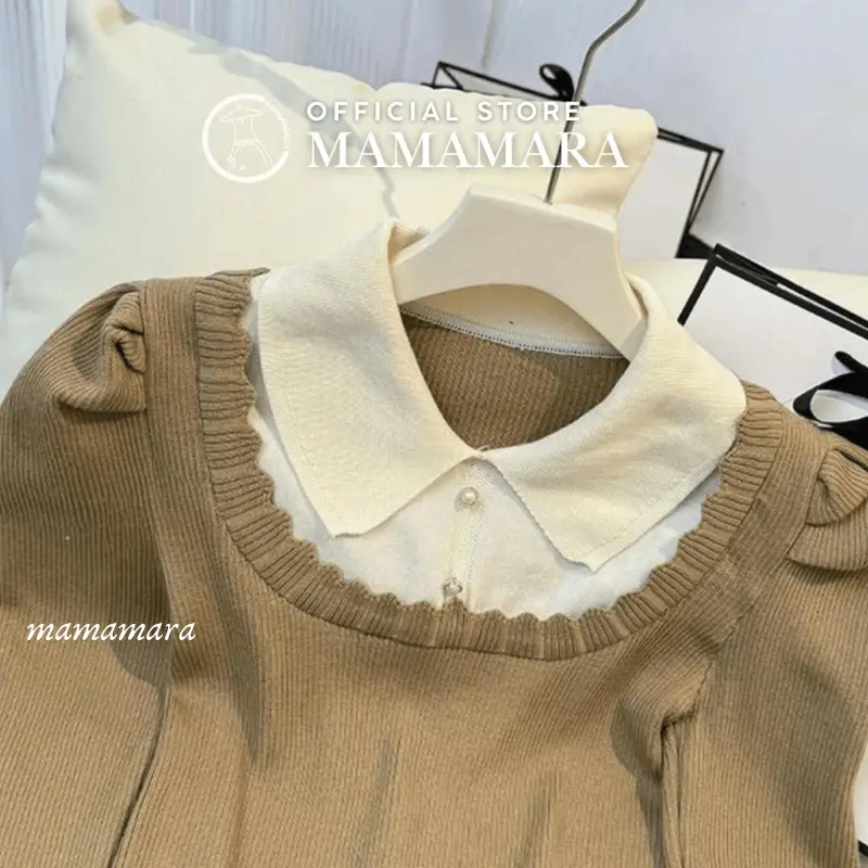 MAMAMARA - Atasan Wanita Lace Kerah Rajut Knitwear Inner Fit Body Wol Santai