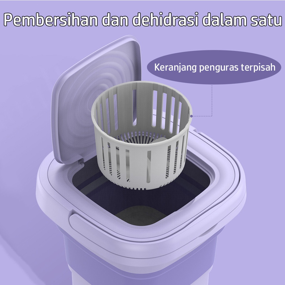 Koomas Mesin Cuci Mini Portable 2 Tabung 8L Mesin Cuci Lipat Otomatis Mesin Pengering Pakaian Sterilisasi Cahaya Biru