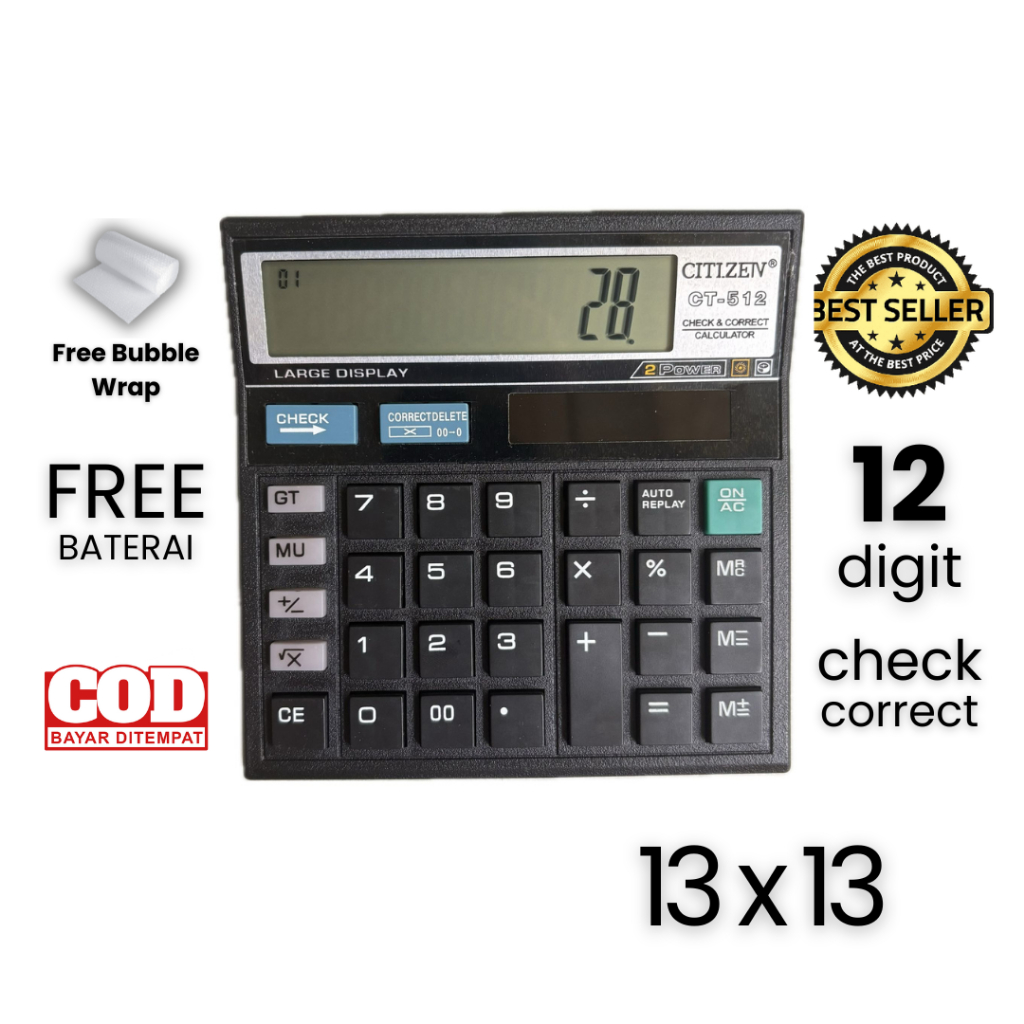 Kalkulator CITIZEN CT 512 - 12 Digit Check Correct - Calculator Dual / 2 Power - Calculator Kantor Sekolah Dagang CT-512