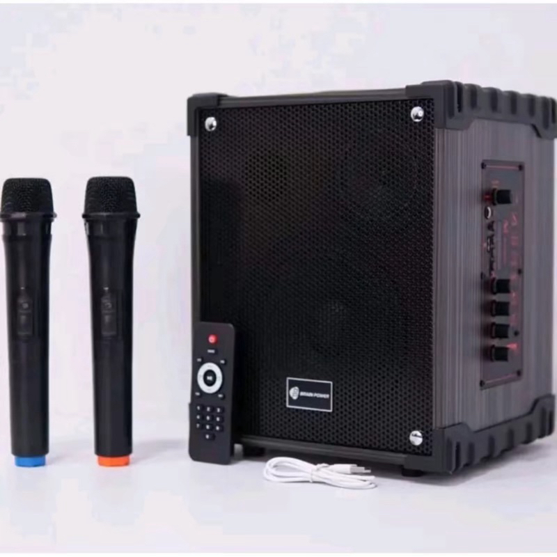 BRAIN POWER PORTABLE QS-1285H DOUBLE SPEAKER FULL BASS SQUARE FREE 2 MICROPHONE WIRELESS