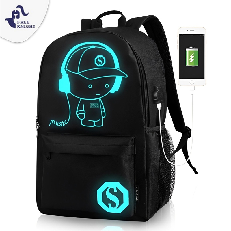Freeknight Tas Ransel Sekolah USB Charger Tas Punggung Pria Luminous Tas Laptop Anti Maling TCR03