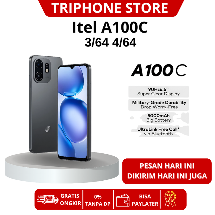 Itel A100C 4+64GB Layar 6.6" Tahan Banting Military-Grade Big Memory UltraLink Free Call 5000mAh