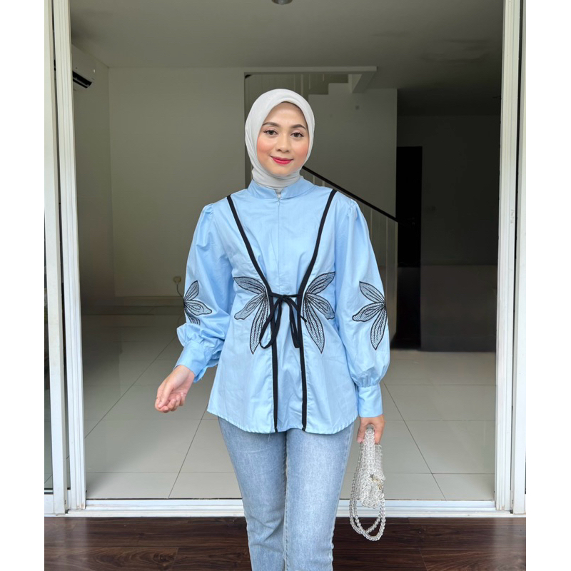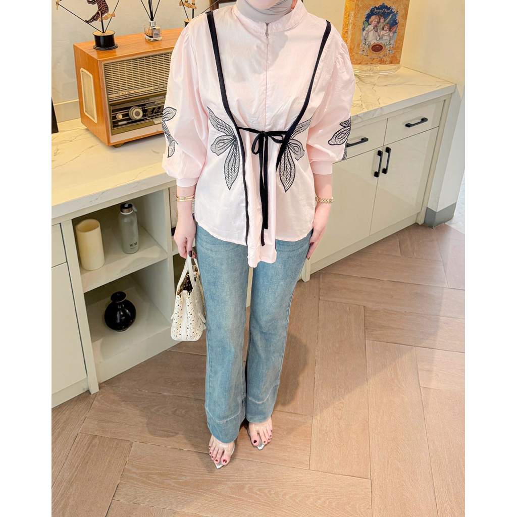 PLUMFIT Kaos Wanita Oversize Motif Garis Matterial Cotton Combed Karisa Shirt