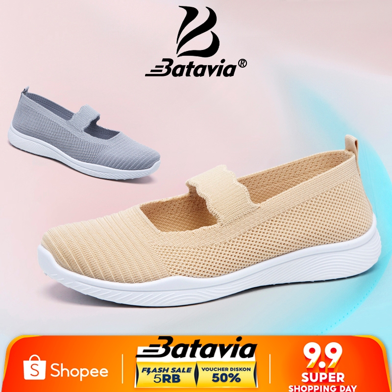 Batavia Sepatu Datar Ibu Sepatu Bernapas Lembut dan Nyaman Rajut A172