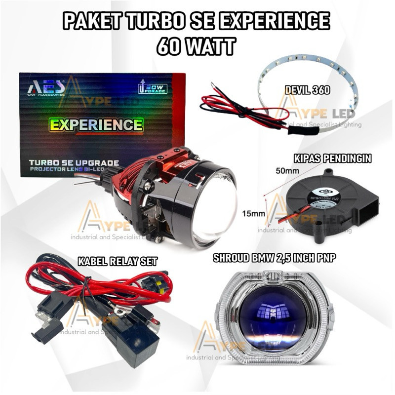COMBO PAKET HEMAT BILED AES TURBO SE EXPERIENCE 60 WATT ORIGINAL BILED Gen 3 AES PAKETAN SHROUD 2,5 INCHI
