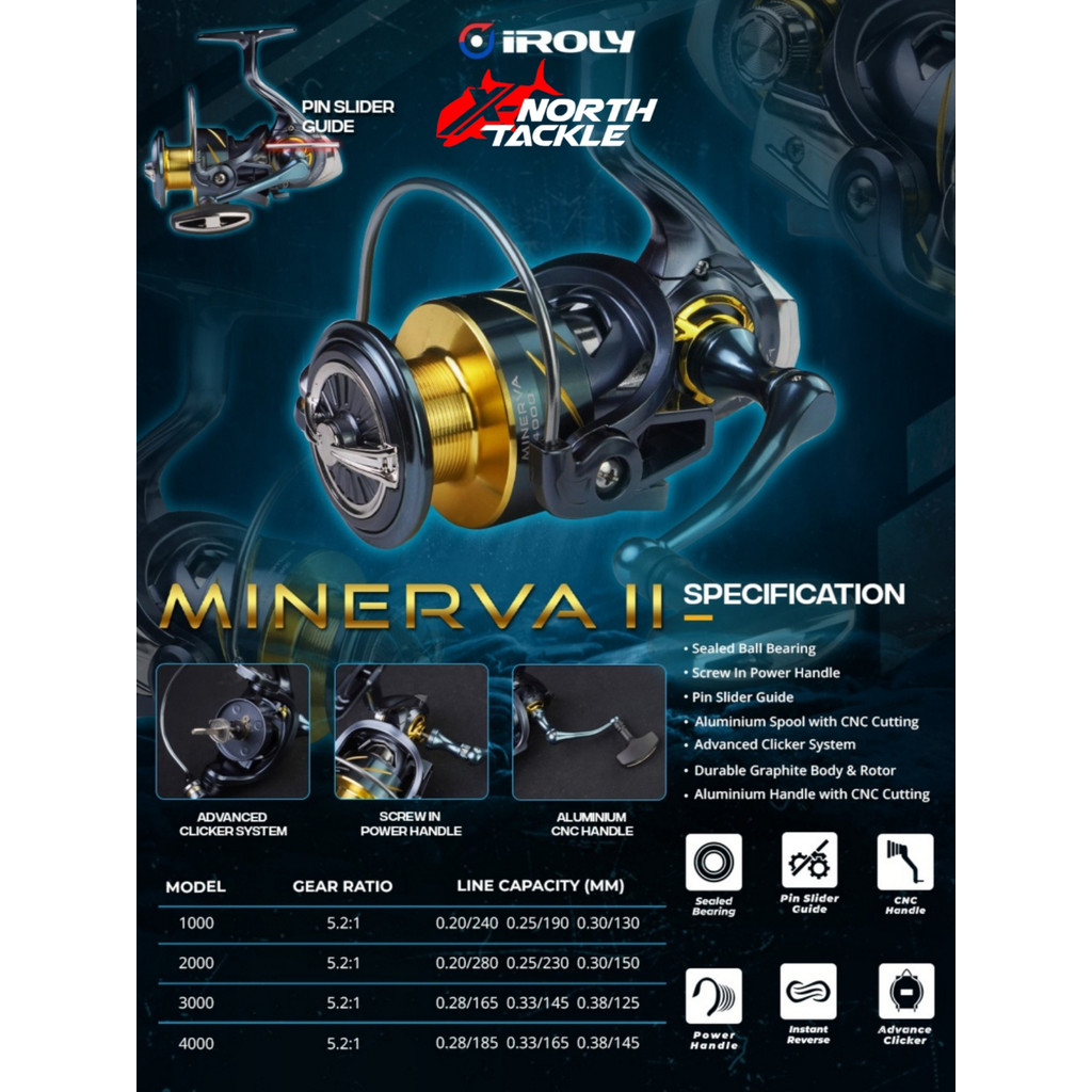 REEL SPINNING IROLY MINERVA II 1000 2000 3000 4000 SCREW IN POWER HANDLE ONE WAY CLUTCH