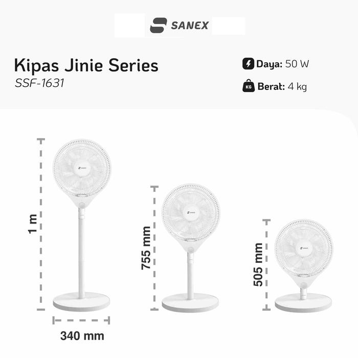 SANEX Jinie Series Kipas Angin Standing Berdiri 3in1 16 Inch SSF-1631