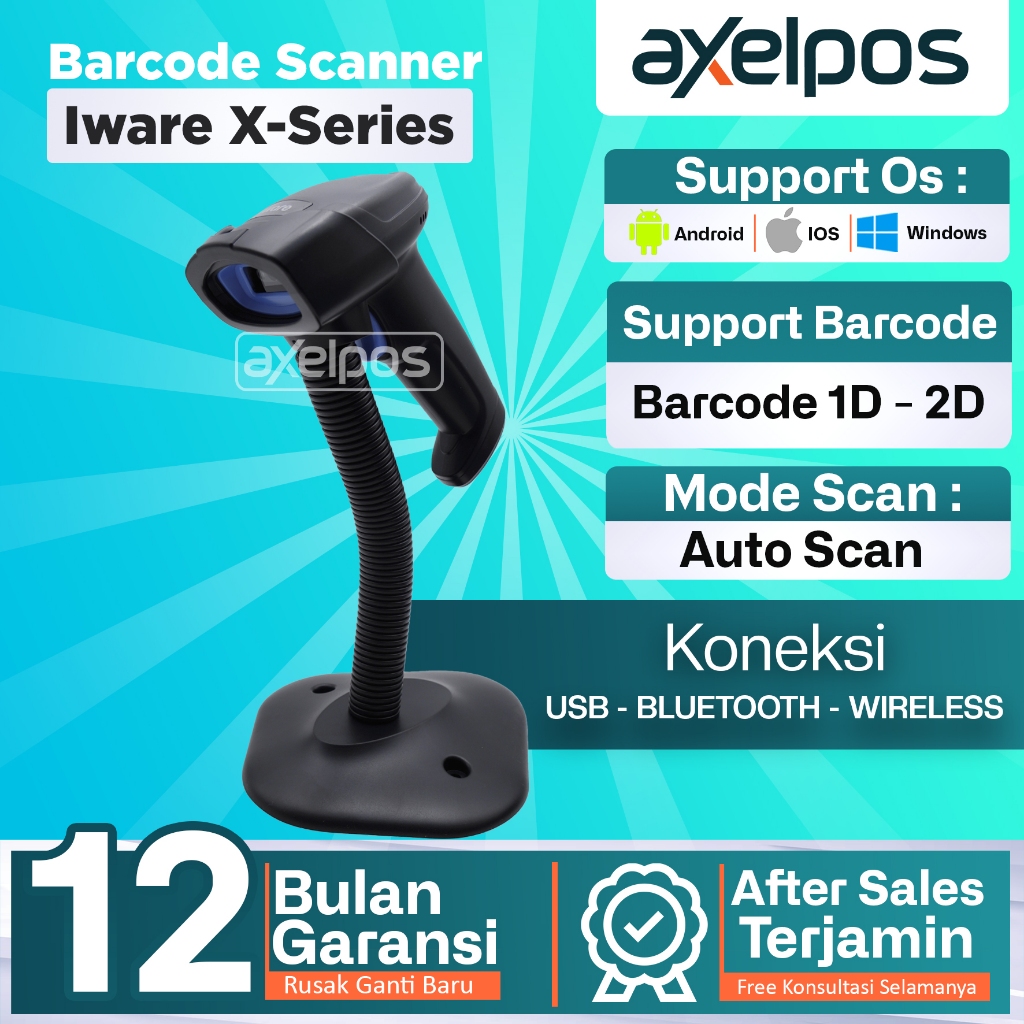 Axelpos Bare Scanner Usb Bluetooth Wireless 1D/2D Auto Scan Iware X-Series