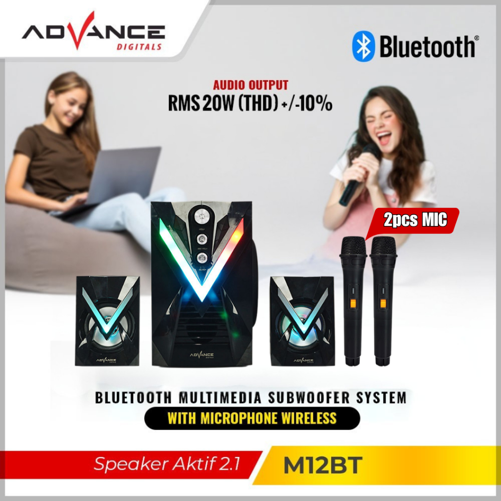 【Bisa dikirim hari ini】2Mic Advance Speaker Bluetooth Bass Speaker Portable Speaker Aktif Subwoofer 12BT