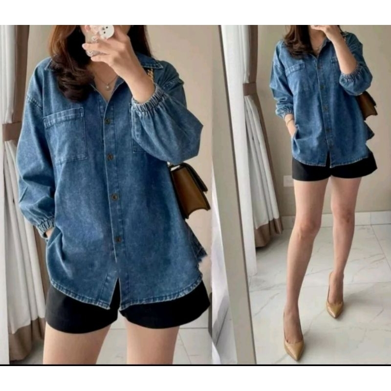 KEMEJA JEANS WANITA LENGAN PANJANG MODEL TERBARU