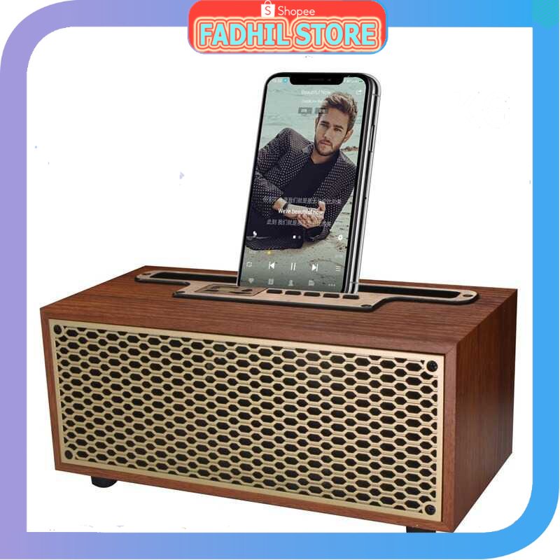 FS - MOMO Portable Bluetooth Speaker Vintage Wood - XM-5H - Fadhil Store
