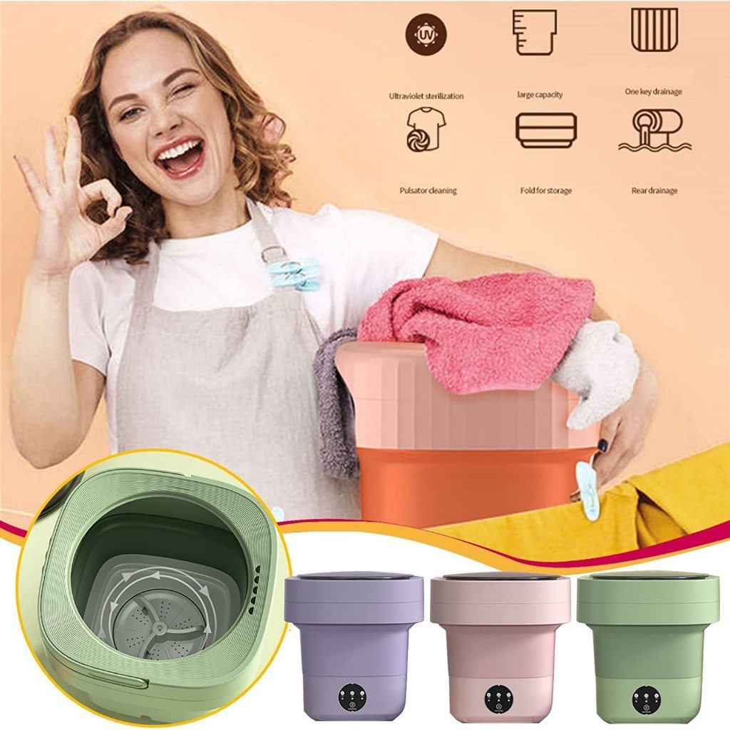 TOYA Mesin Cuci Mini Portable Lipat 8L Mesin Cuci Lipat Otomatis Mesin Pengering Pakaian Sterilisasi Cahaya Biru/Mesin cuci pakaian dalam dan kaus kaki bayi