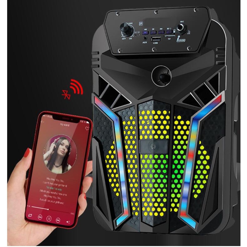 Speaker Bluetooth QS-2602 Bonus Mic 6,5Inci Salon Aktif Portable Radio Fm Speaker Wireless Led